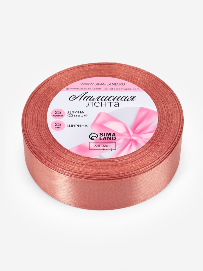 Лента атласная, 25 мм, 23±1 м, тёмно-розовая №102 — Характеристики