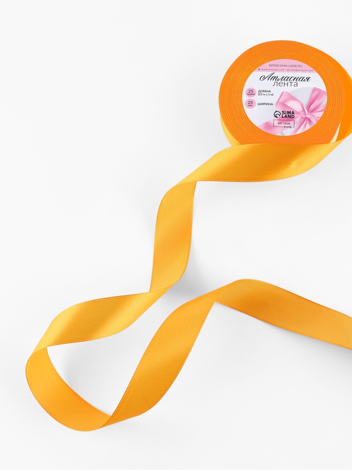 Лента атласная, 25 мм, 23±1 м, жёлто-оранжевая №17 — Характеристики