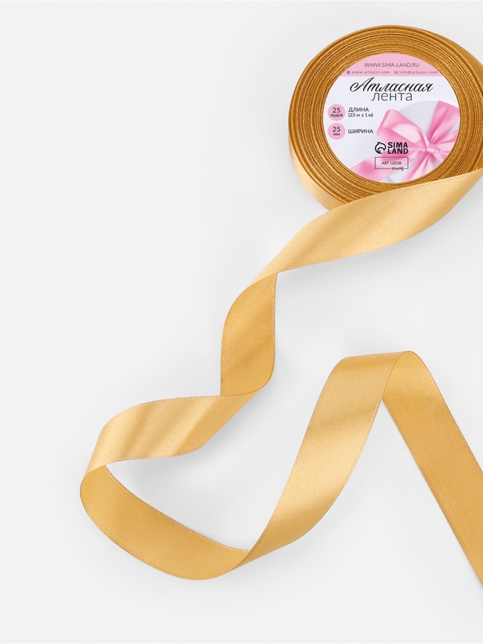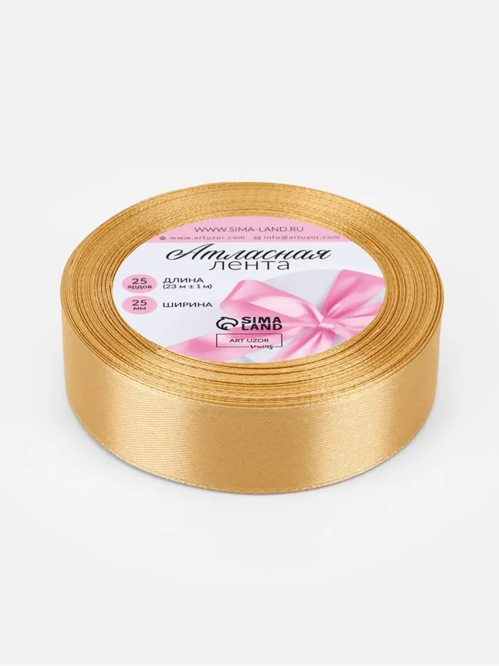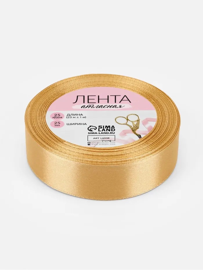 Лента атласная, 25 мм, 23±1 м, золотисто-бежевая №186 — Характеристики