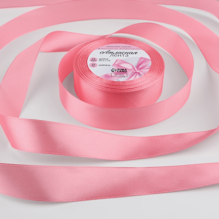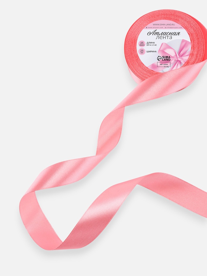 Лента атласная, 25 мм × 23 ± 1 м, цвет лососёвый №263 — Характеристики