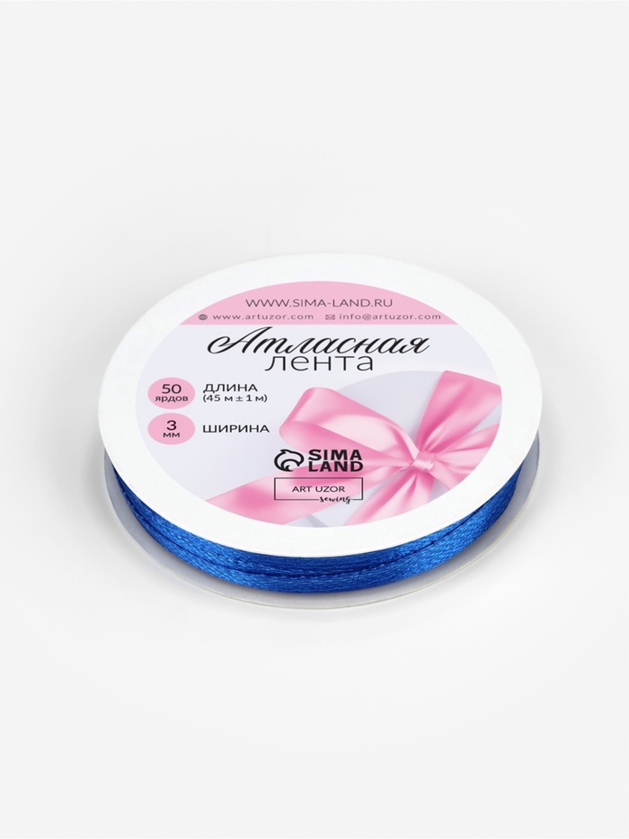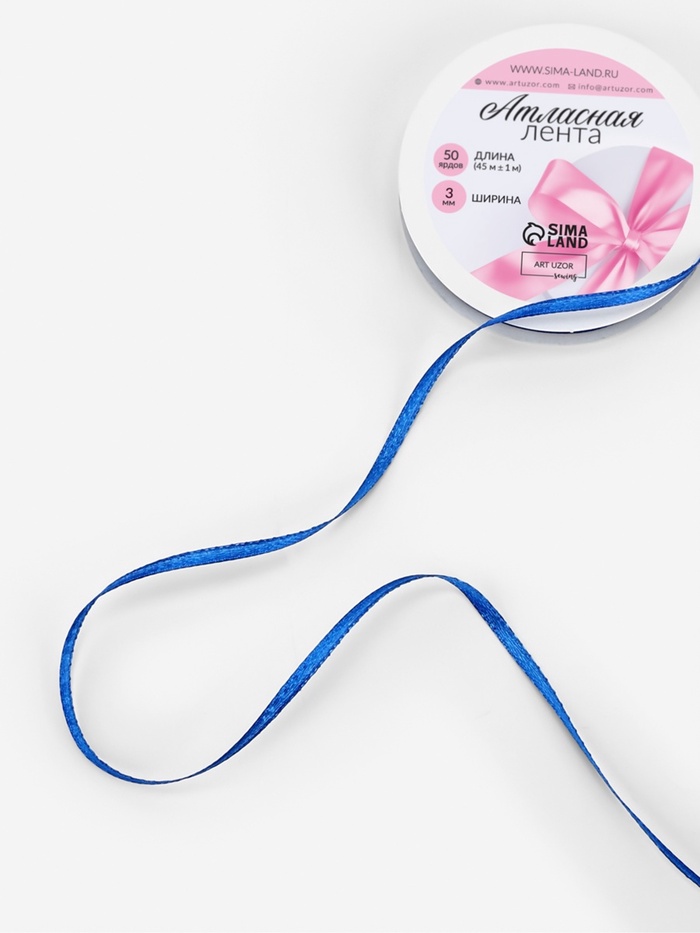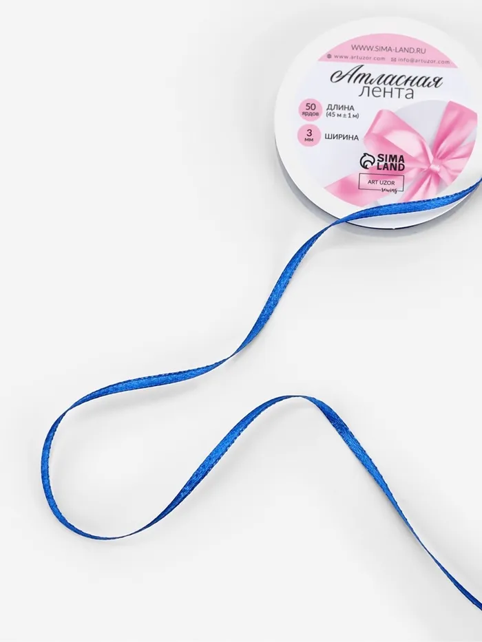 Лента атласная, 3 мм, 45±1 м, синяя №40 — Характеристики