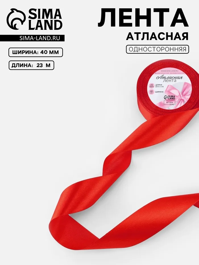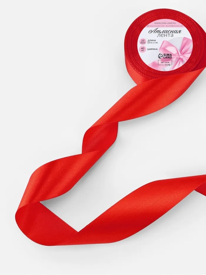 Лента атласная, 40 мм, 23±1 м, алая — Характеристики
