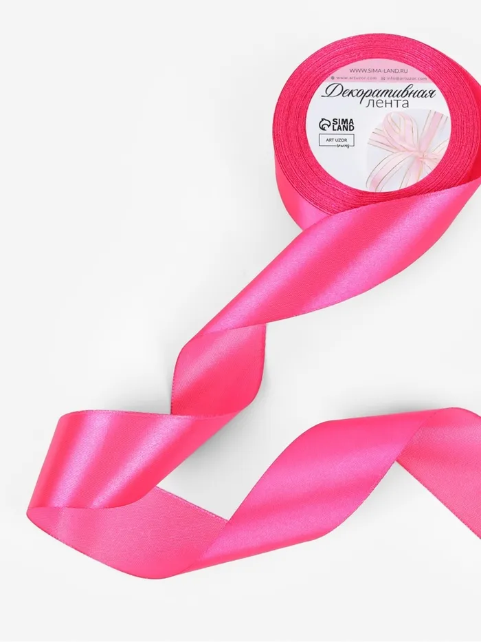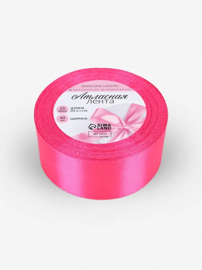 Лента атласная, 40 мм, 23±1 м, ярко-розовая №190 — Характеристики