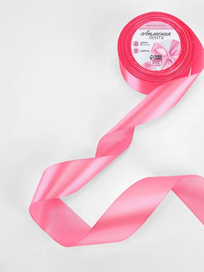 Лента атласная, 40 мм, 23±1 м, насыщенно-розовая №05 — Характеристики