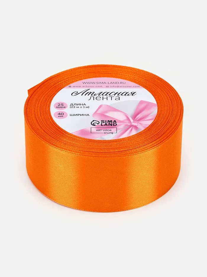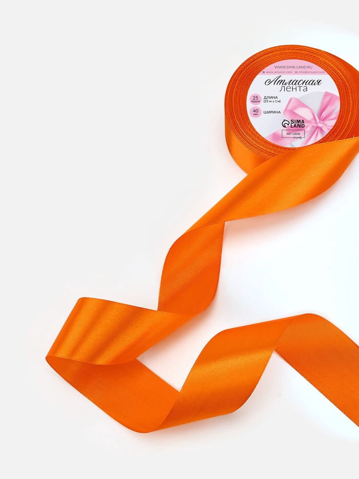 Лента атласная, 40 мм × 23 ± 1 м, цвет ярко-оранжевый №25 — Характеристики