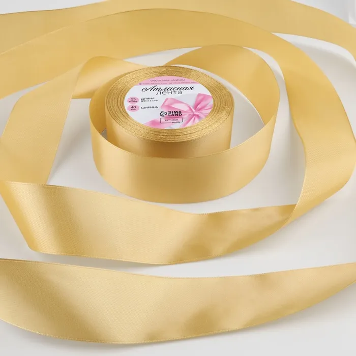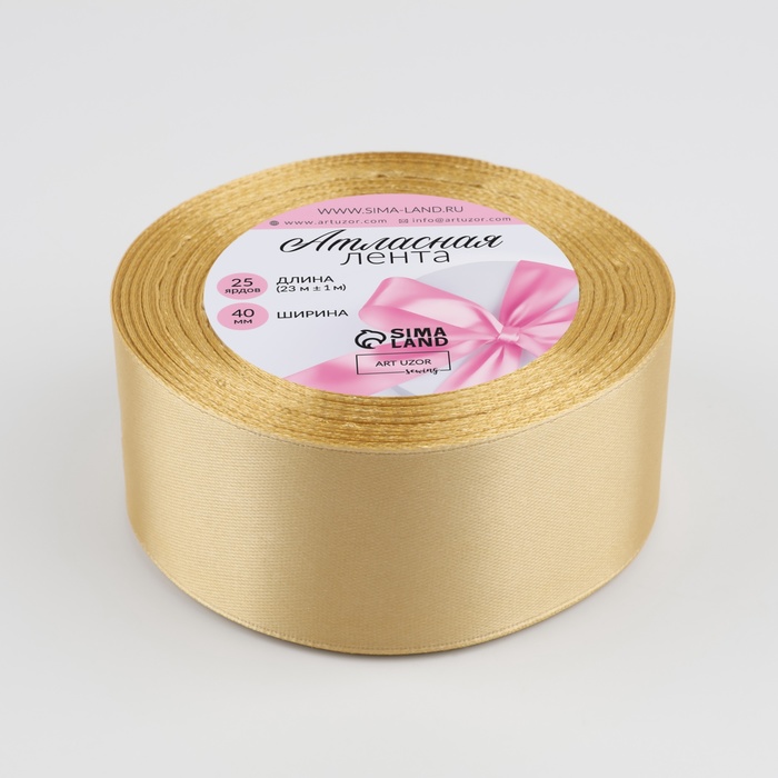 Лента атласная, 40 мм × 23 ± 1 м, цвет золотисто-бежевый №186 — Характеристики