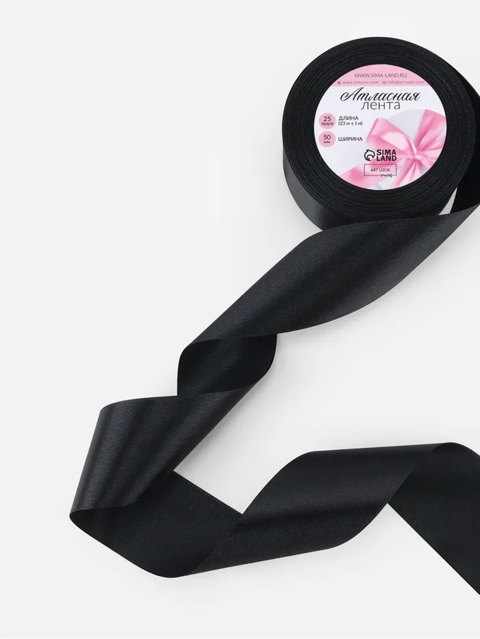 Лента атласная, 50 мм, 23±1 м, чёрная №39 — Характеристики