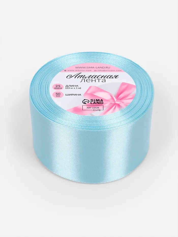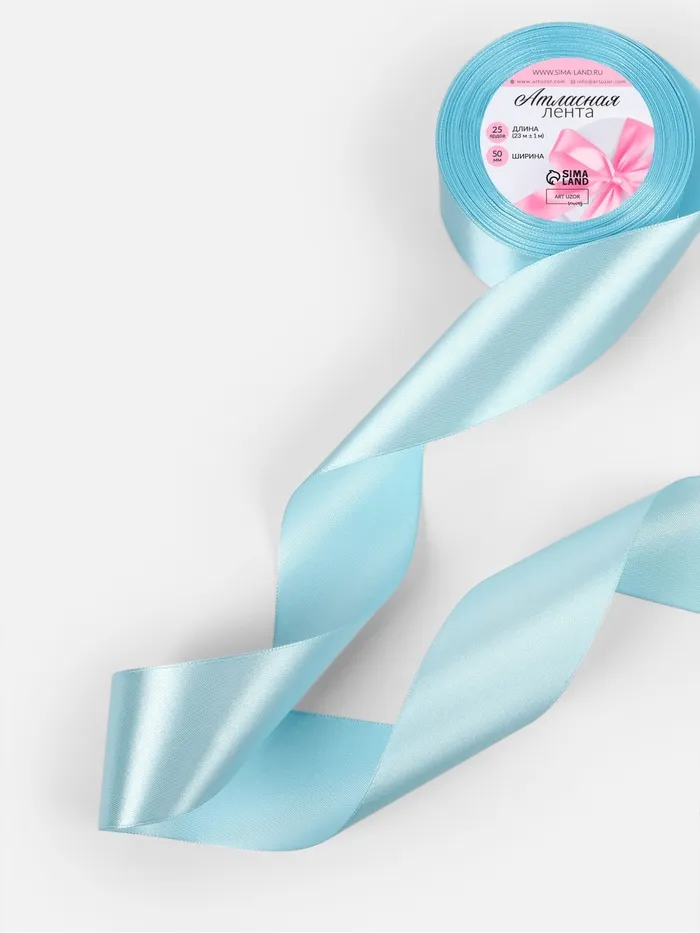Лента атласная, 50 мм, 23±1 м, голубая №211 — Характеристики