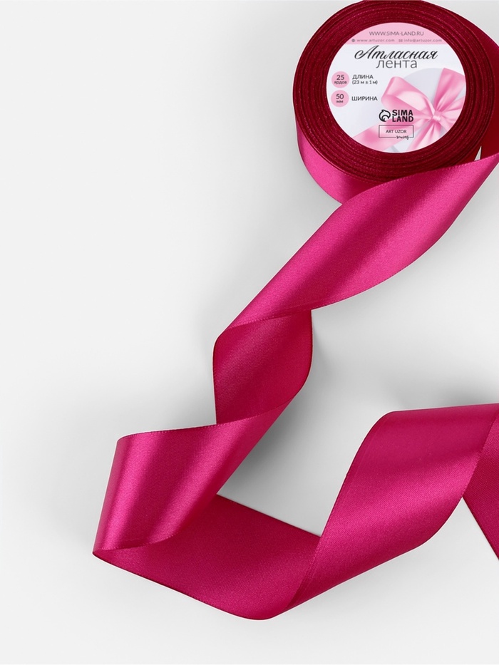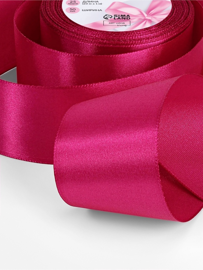 Лента атласная, 50 мм, 23±1 м, ярко-розовая №27 — Характеристики