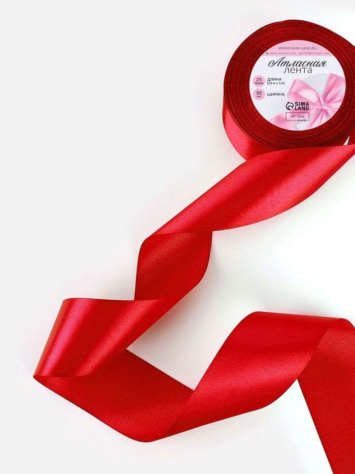 Лента атласная, 50 мм, 23±1 м, красная №26 — Характеристики