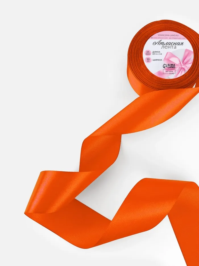 Лента атласная, 50 мм, 23±1 м, оранжевая №164 — Характеристики
