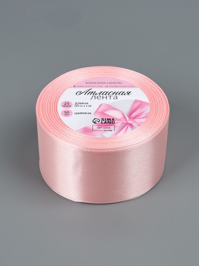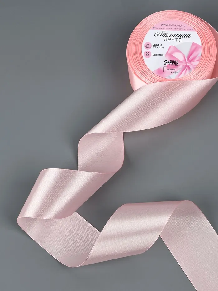 Лента атласная, 50 мм, 23±1 м, пастельно-розовая №43 — Характеристики