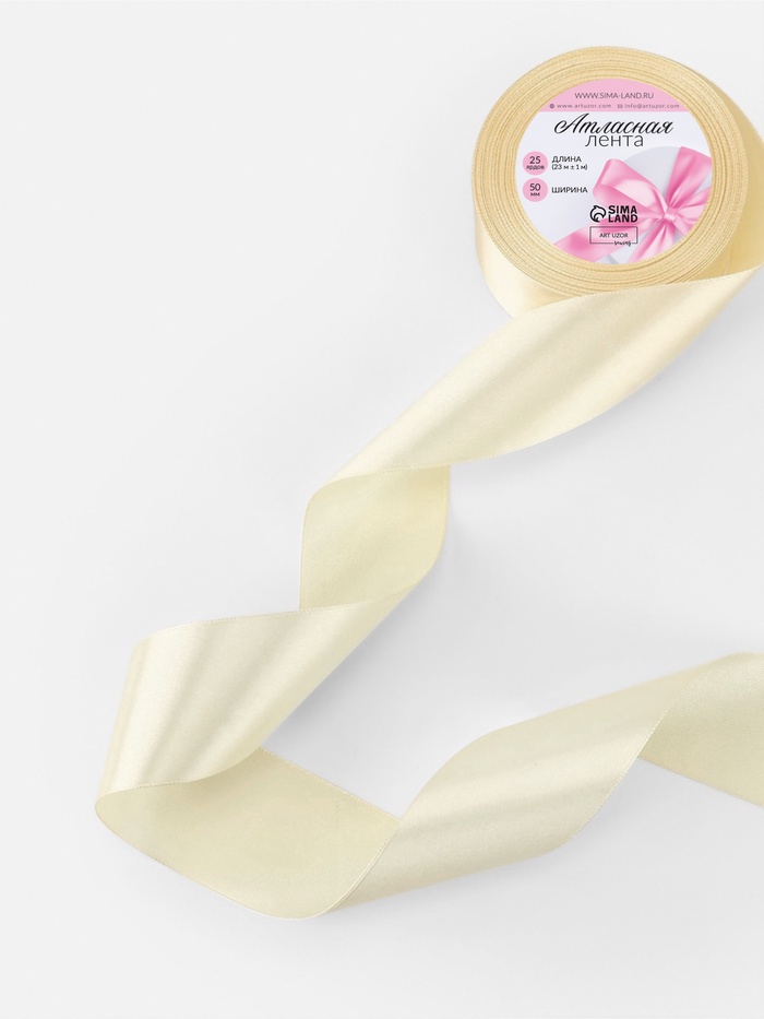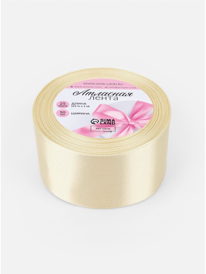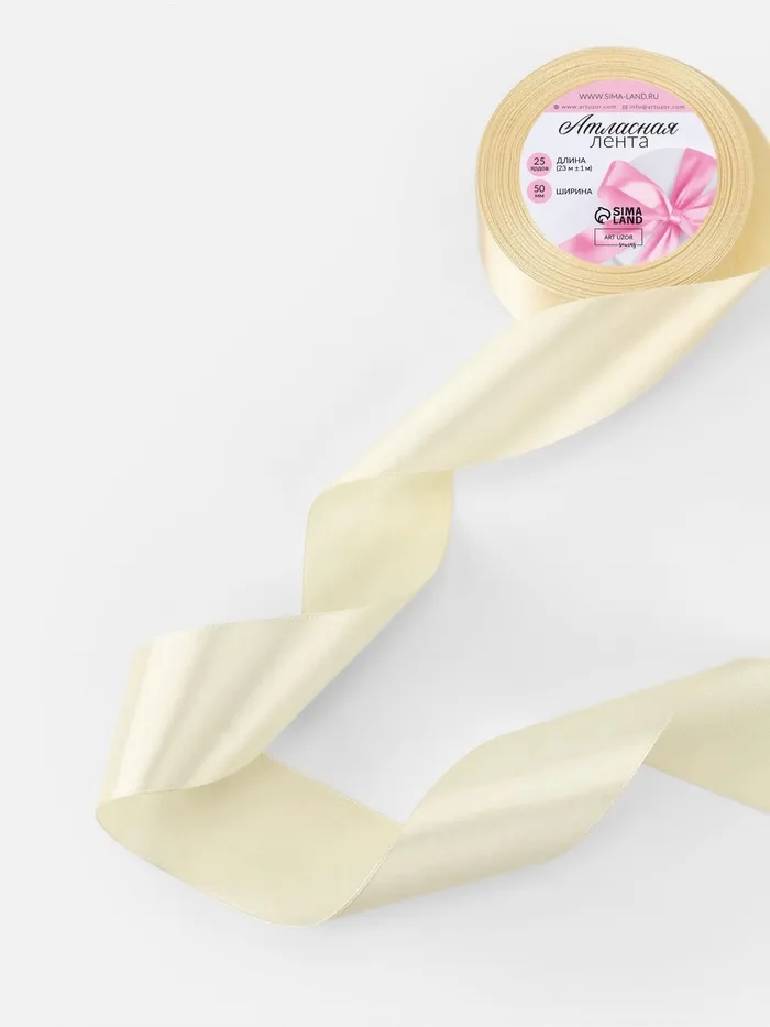 Лента атласная, 50 мм, 23±1 м, сливочный №02 — Характеристики