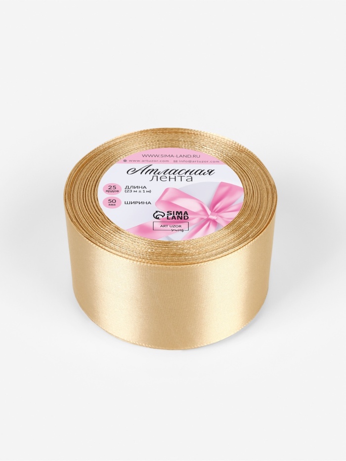 Лента атласная, 50 мм, 23±1 м, тёмно-бежевая №123 — Характеристики