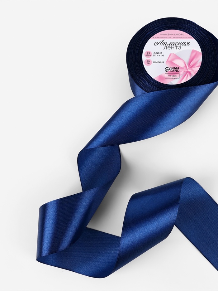 Лента атласная, 50 мм, 23±1 м, тёмно-синяя №38 — Характеристики