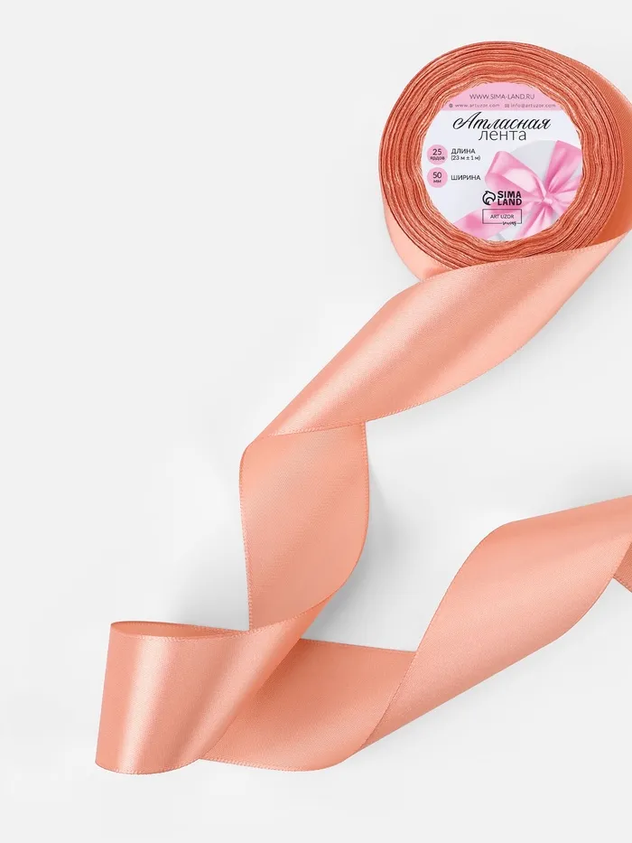 Атласная лента гладкая и приятная на ощупь. Используйте её для отделки изделий, украшения подарков, свадебного оформления, а также в техниках скрапбукинг и канзаши.