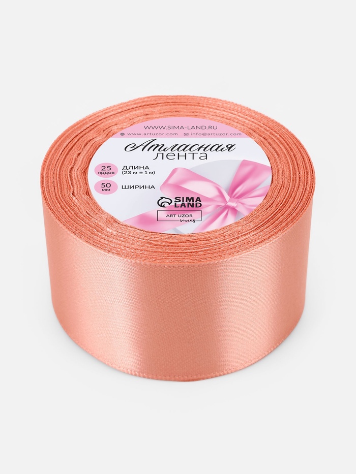 Лента атласная, 50 мм, 23±1 м, цвет розовое золото — Характеристики