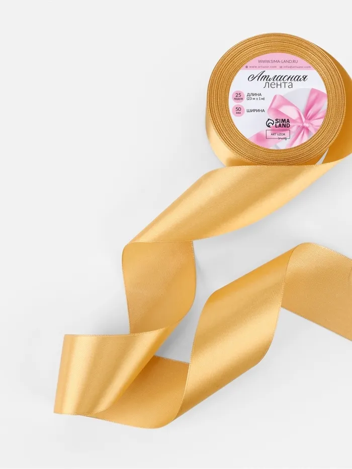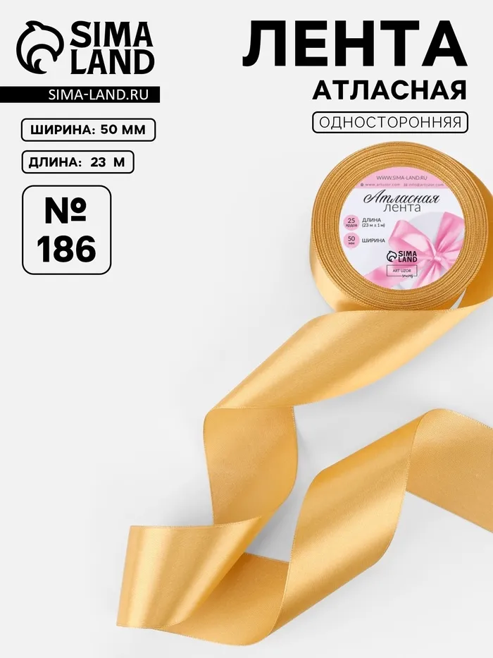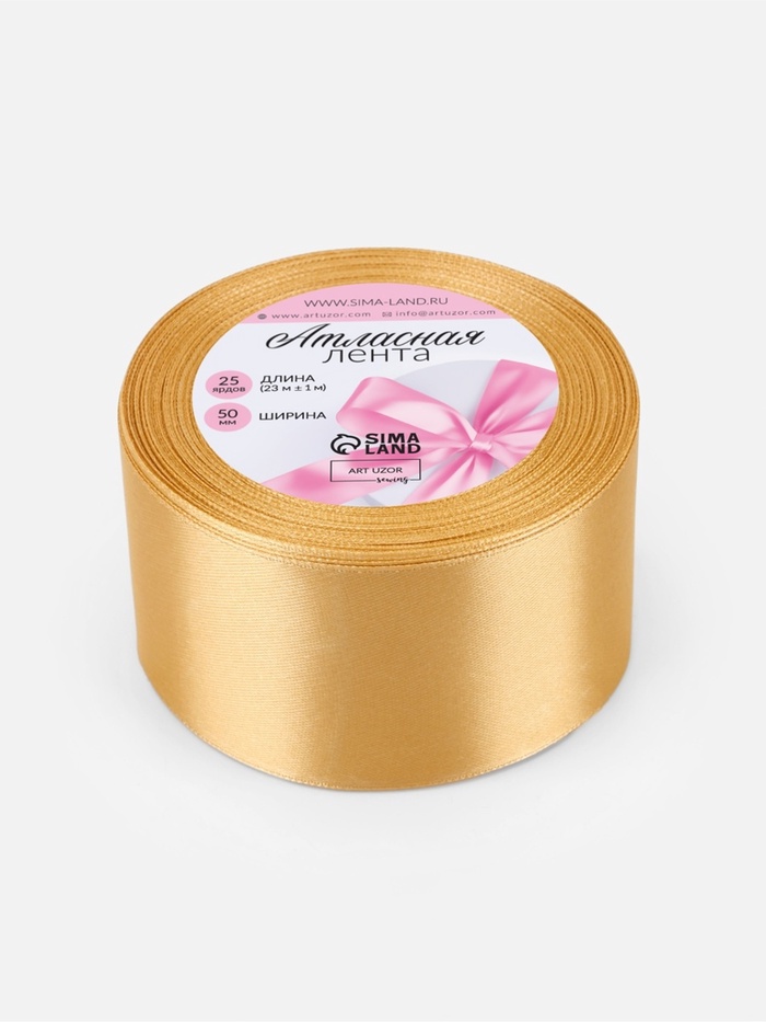 Лента атласная, 50 мм, 23±1 м, золотисто-бежевая №186 — Характеристики