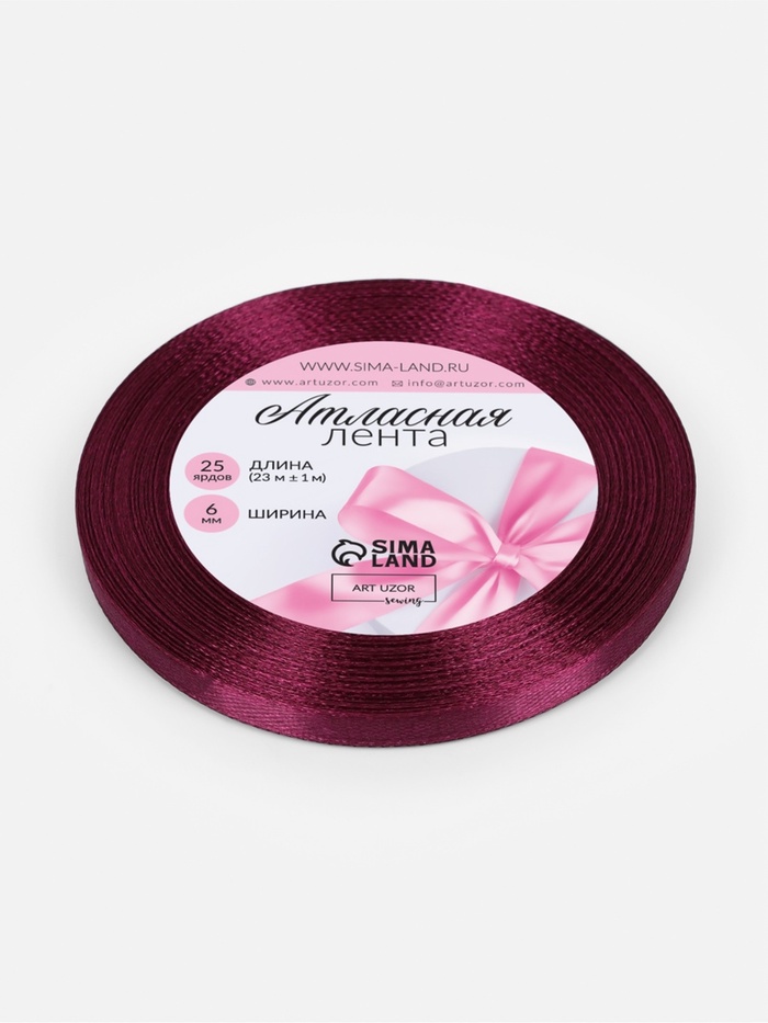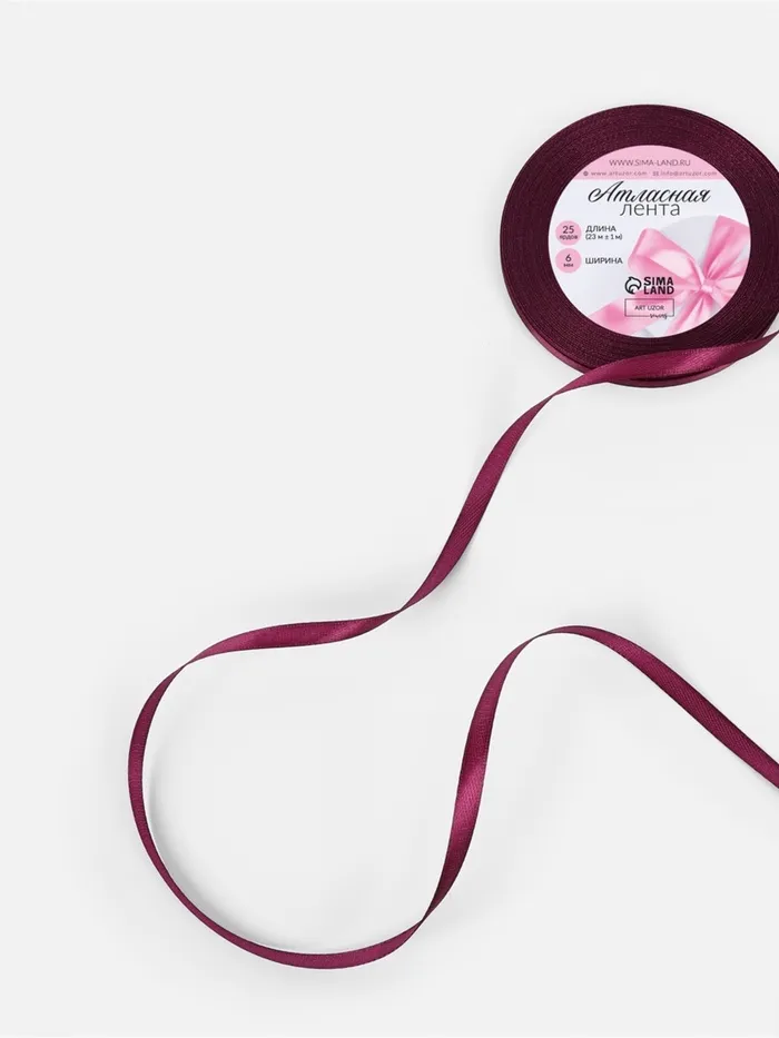 Лента атласная, 6 мм, 23±1 м, баклажановая №252 — Характеристики