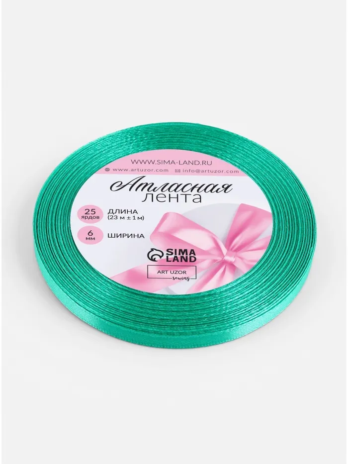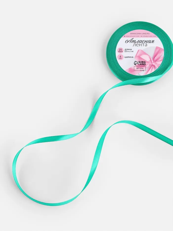 Лента атласная, 6 мм, 23±1 м, бирюзовая №54 — Характеристики