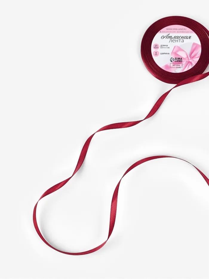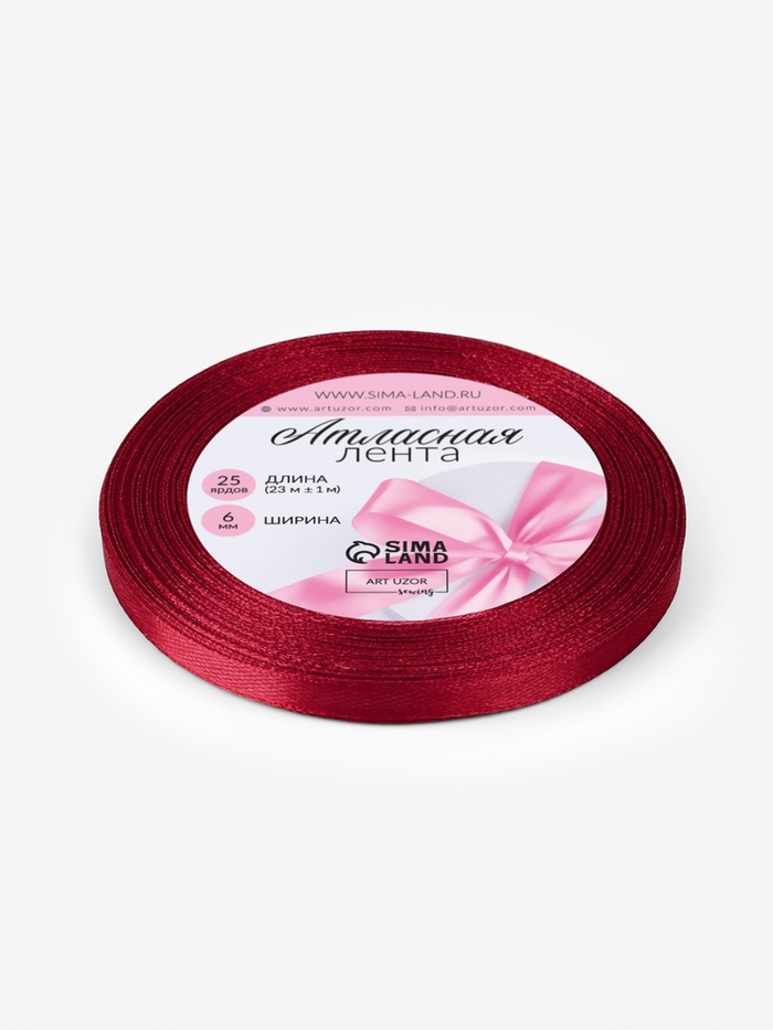 Лента атласная, 6 мм, 23±1 м, бордовая №37 — Характеристики