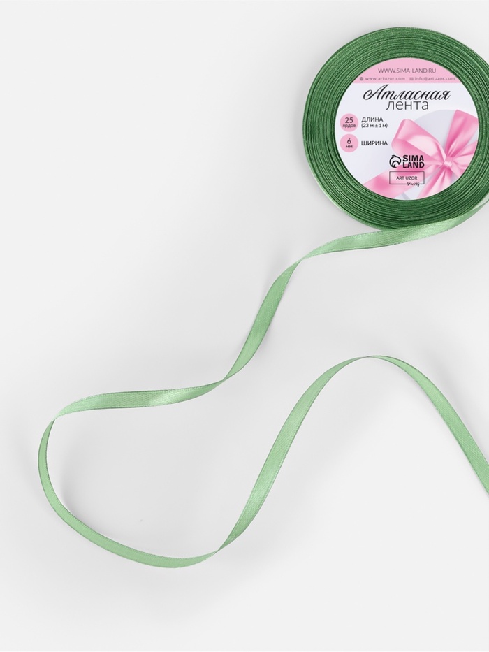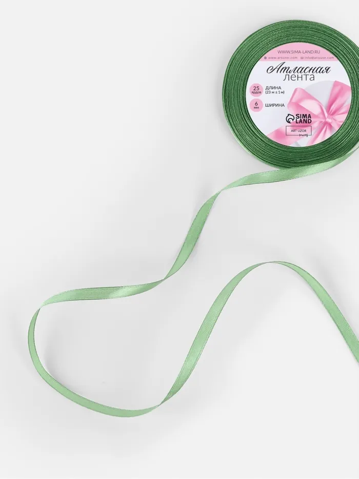 Лента атласная, 6 мм, 23±1 м, фисташковая №65 — Характеристики