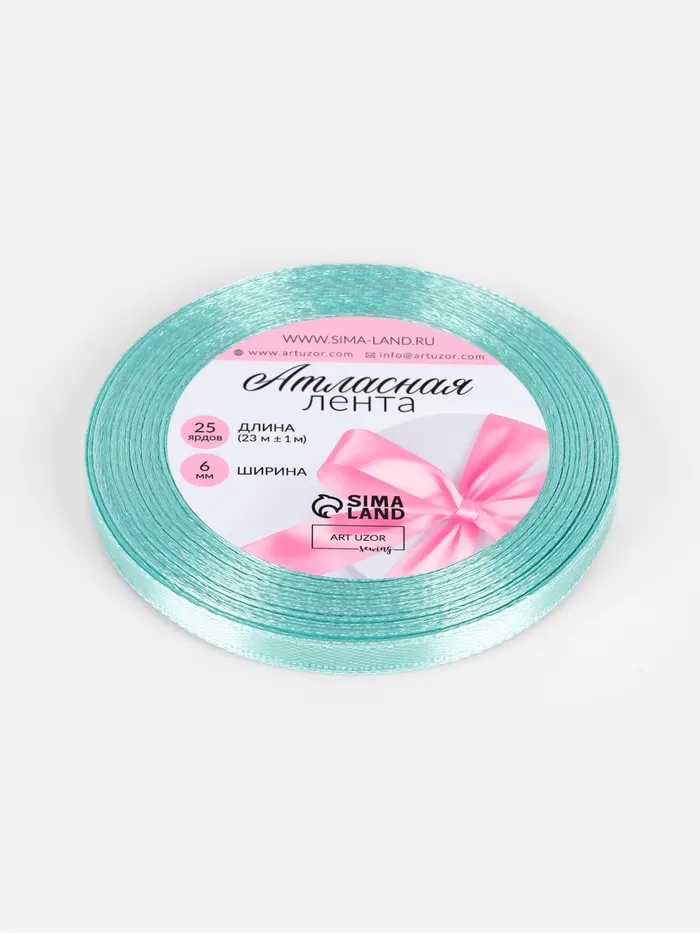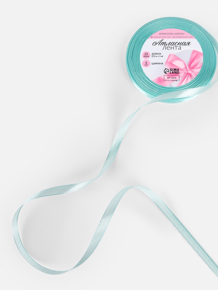Лента атласная, 6 мм, 23±1 м, голубая №211 — Характеристики