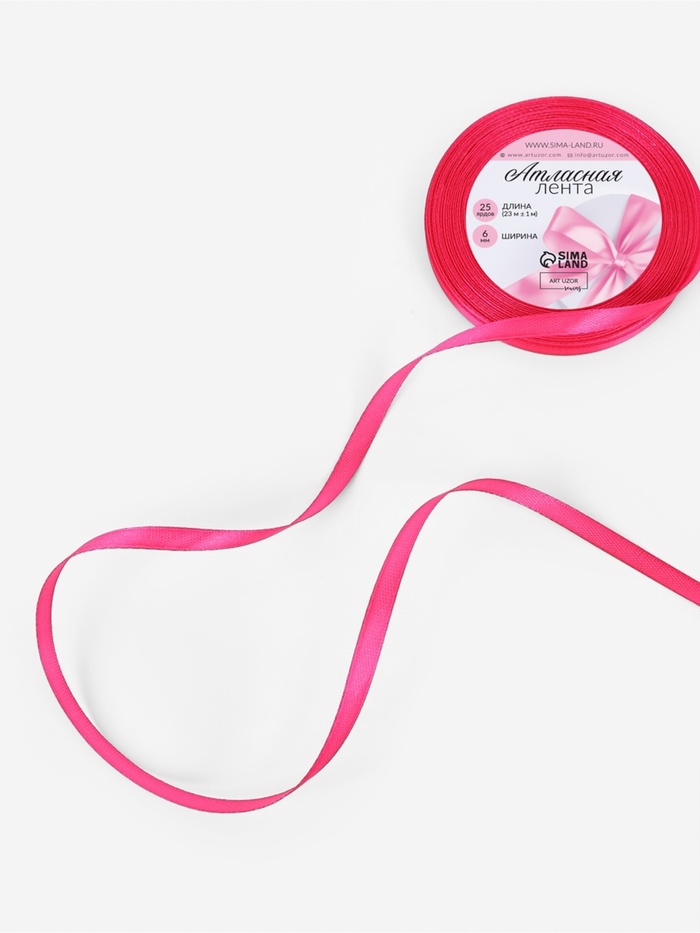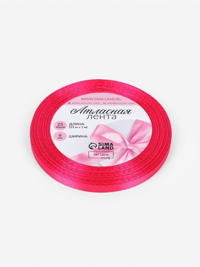 Лента атласная, 6 мм, 23±1 м, ярко-розовая №190 — Характеристики