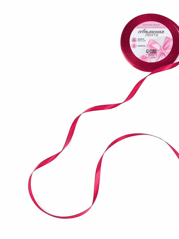 Лента атласная, 6 мм, 23±1 м, ярко-розовая №72 — Характеристики