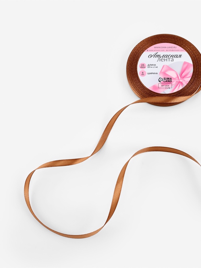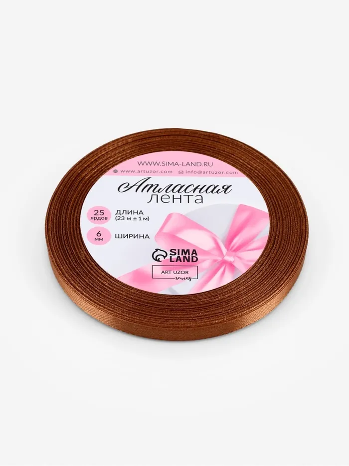 Лента атласная, 6 мм, 23±1 м, коричневая №142 — Характеристики