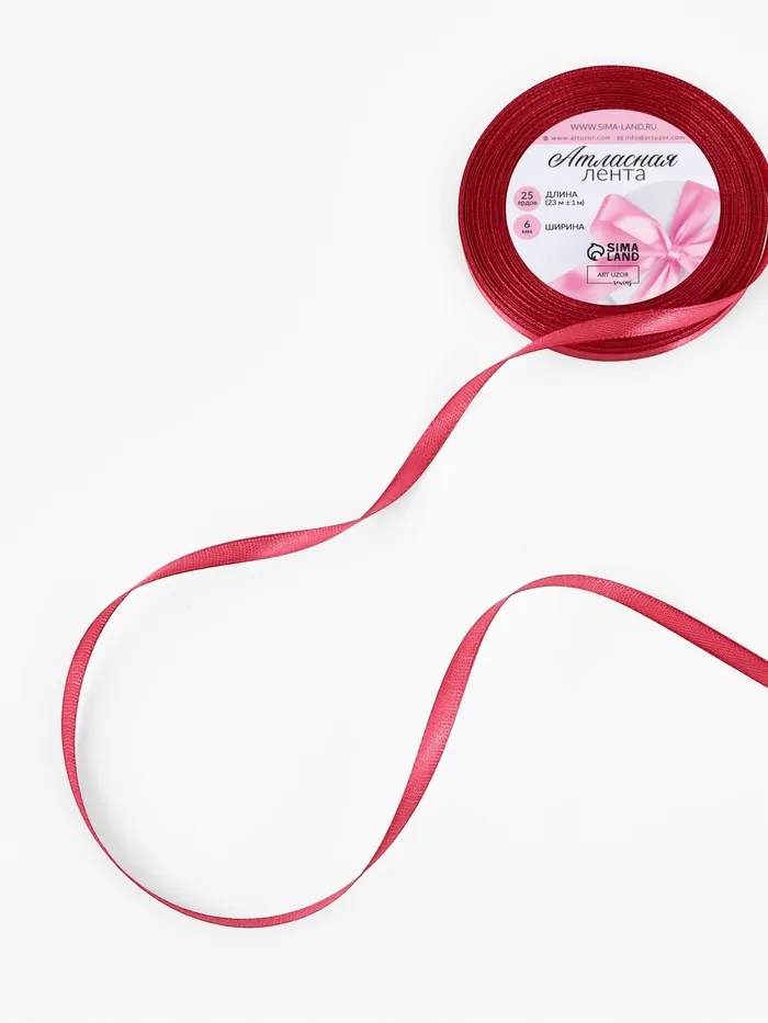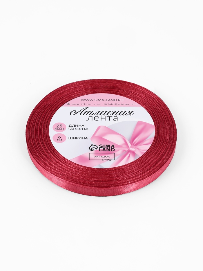 Лента атласная, 6 мм, 23±1 м, малиново-красная №134 — Характеристики