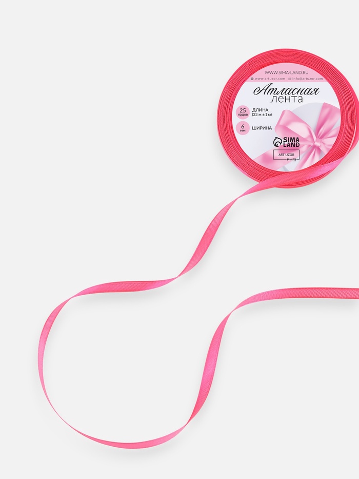 Лента атласная, 6 мм, 23±1 м, неоновая, розовая №14 — Характеристики