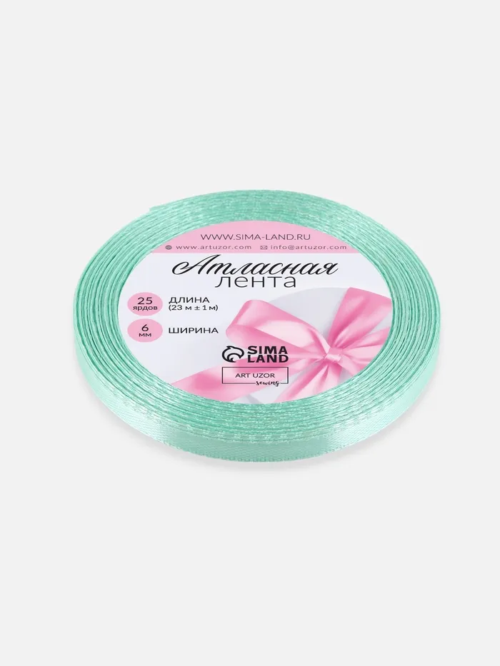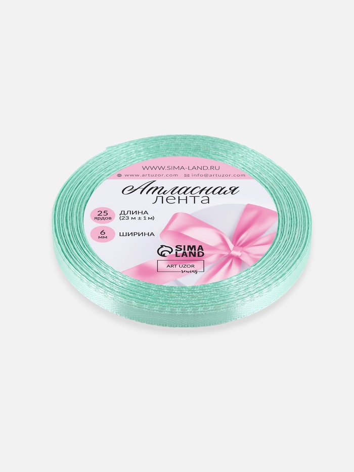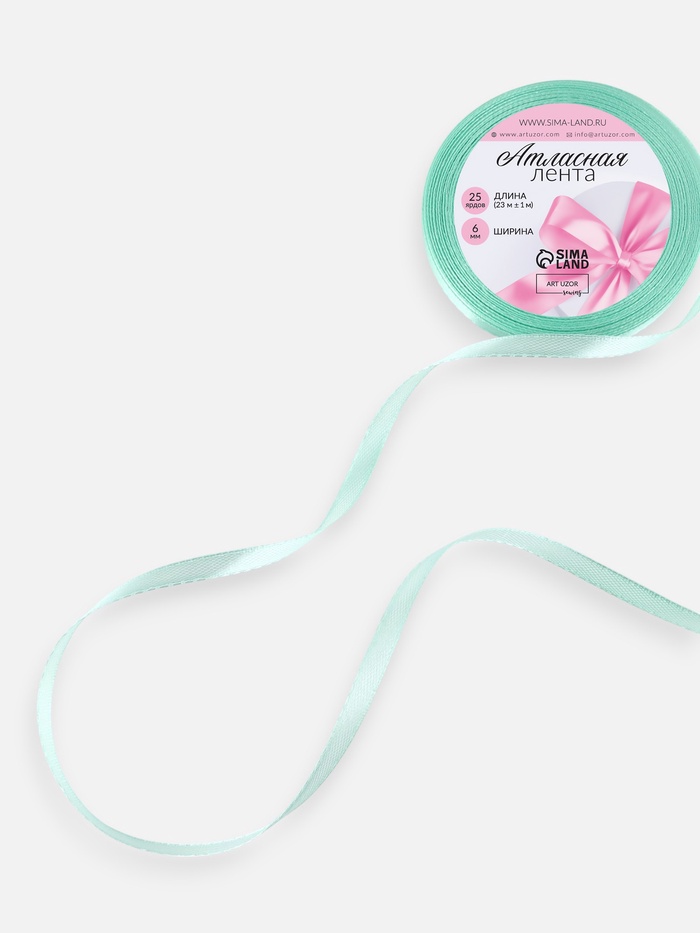 Лента атласная, 6 мм, 23±1 м, нежно-мятная №181 — Характеристики
