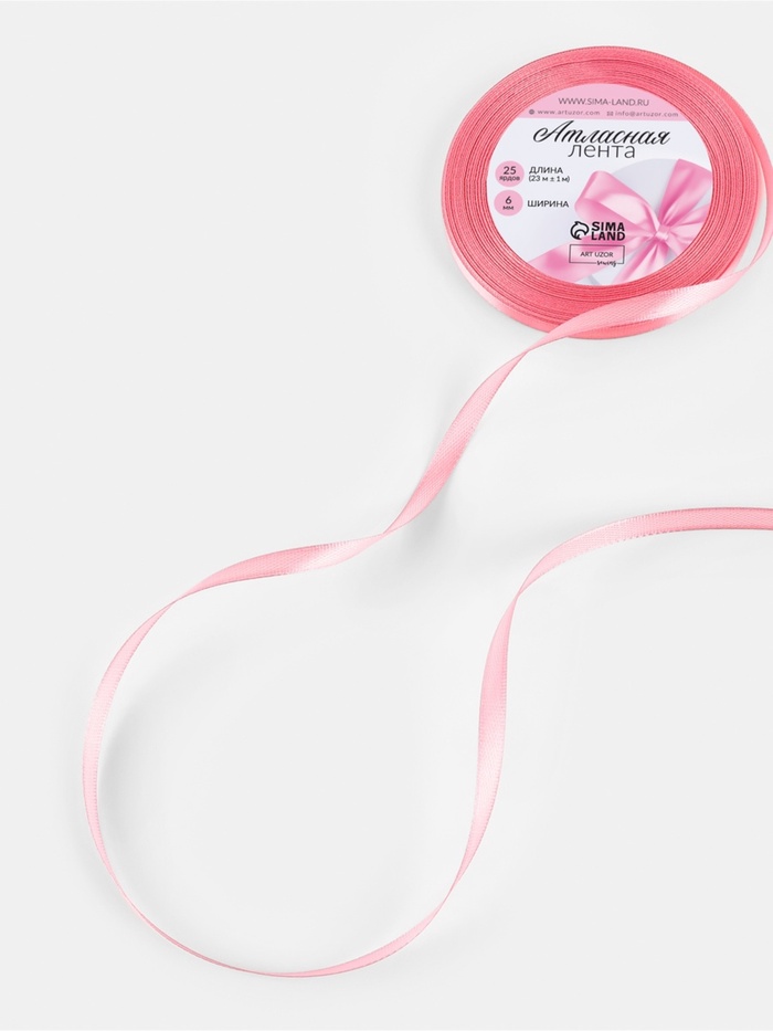 Лента атласная, 6 мм, 23±1 м, пурпурно-розовая №170 — Характеристики