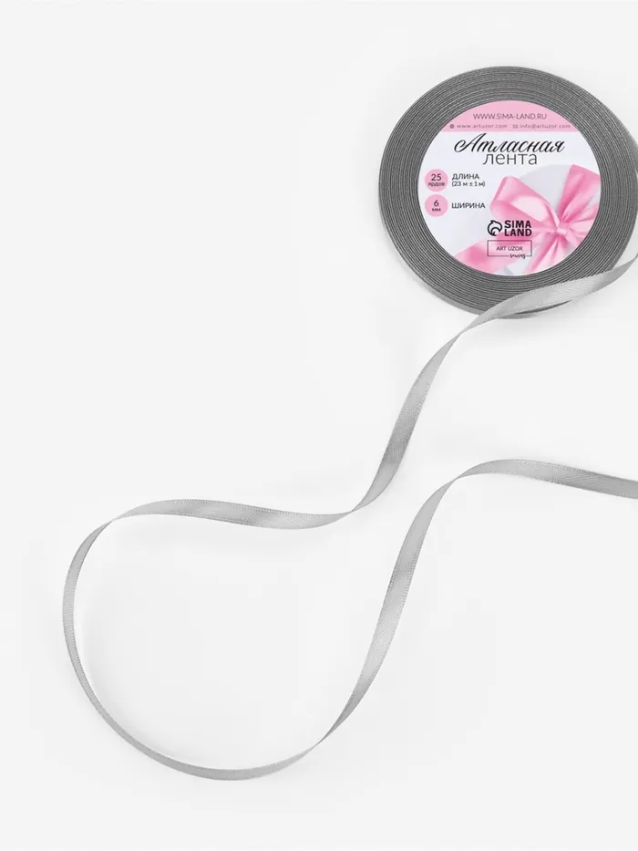 Лента атласная, 6 мм, 23±1 м, серая №59 — Характеристики