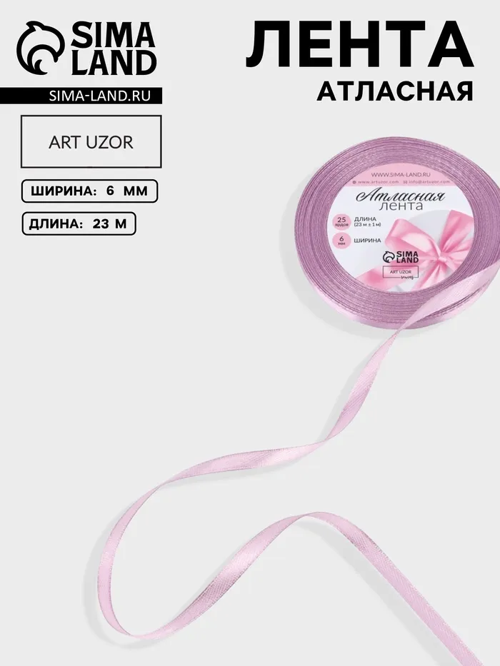 Нежная сиреневая атласная лента длиной 23 метра, шириной 6 мм, станет идеальным аксессуаром для творчества и декорирования. Этот универсальный материал из атласа и полиэстера подойдёт как для профессионального использования, так и для домашнего рукоделия, добавляя изысканности и элегантности вашим проектам.