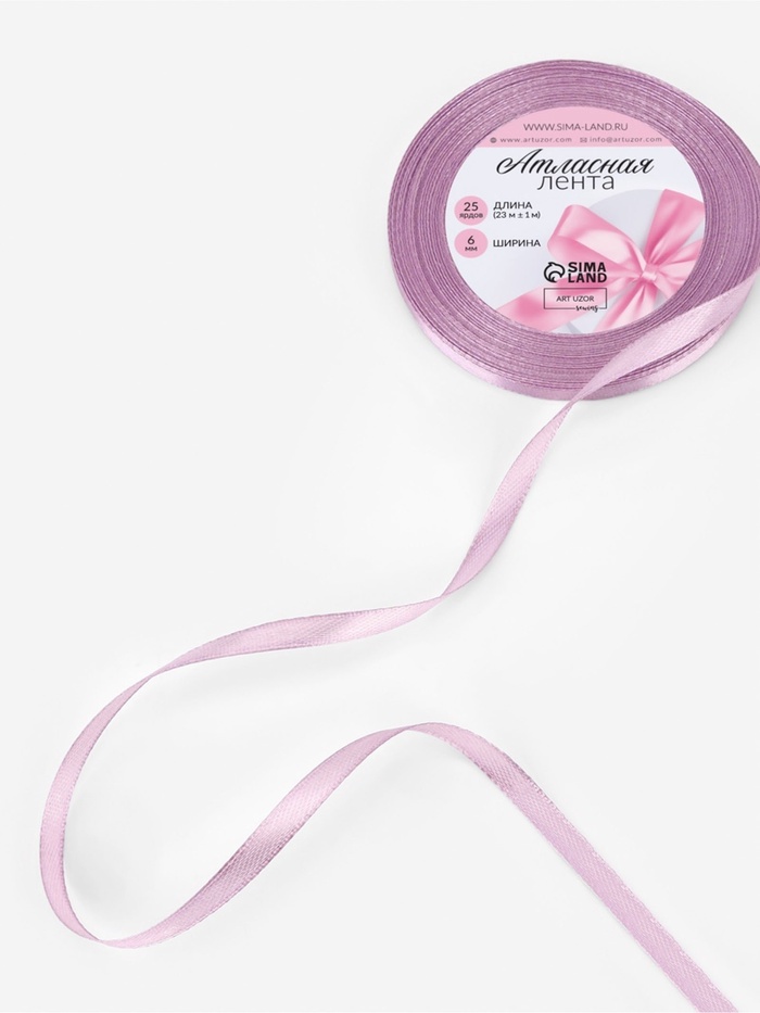 Лента атласная, 6 мм, 23±1 м, сиреневая №141 — Характеристики
