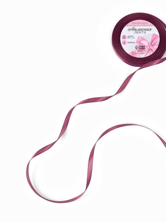 Лента атласная, 6 мм, 23±1 м, сливовая №171 — Характеристики
