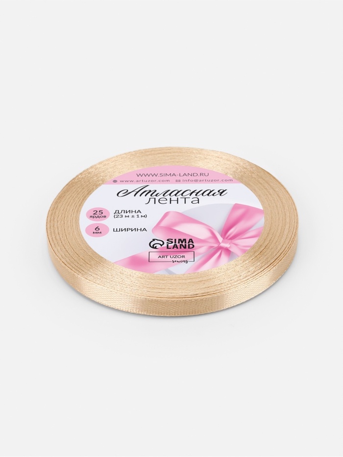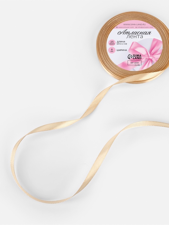 Лента атласная, 6 мм, 23±1 м, светло-бежевая — Характеристики