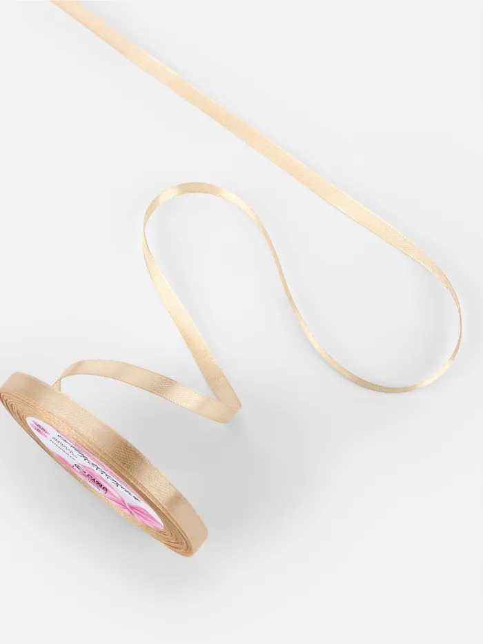 Лента атласная, 6 мм, 23±1 м, светло-бежевая