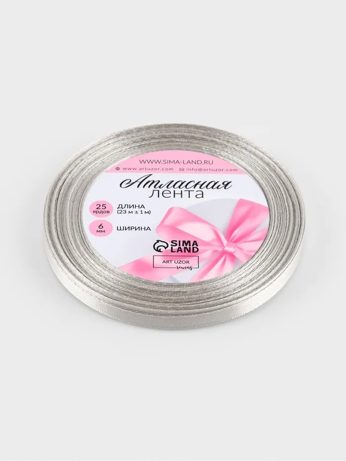 Лента атласная, 6 мм, 23±1 м, светло-серая №179 — Характеристики