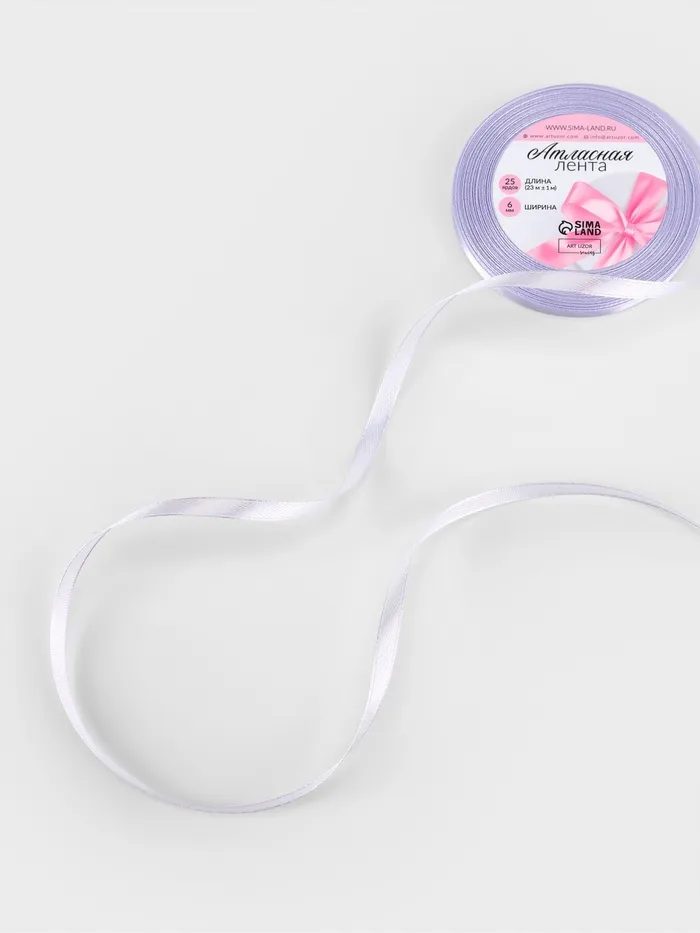 Лента атласная, 6 мм, 23±1 м, светло-сиреневая — Характеристики
