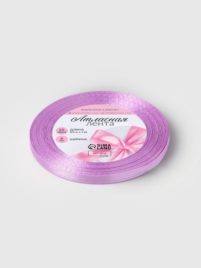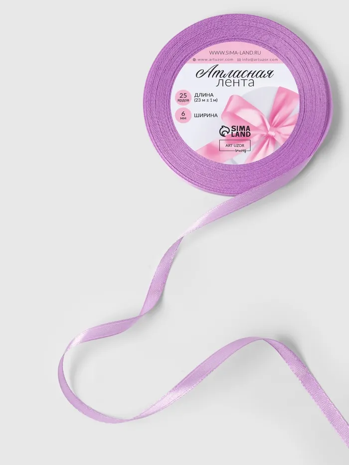 Лента атласная, 6 мм, 23±1 м, светло-сиреневая №45 — Характеристики
