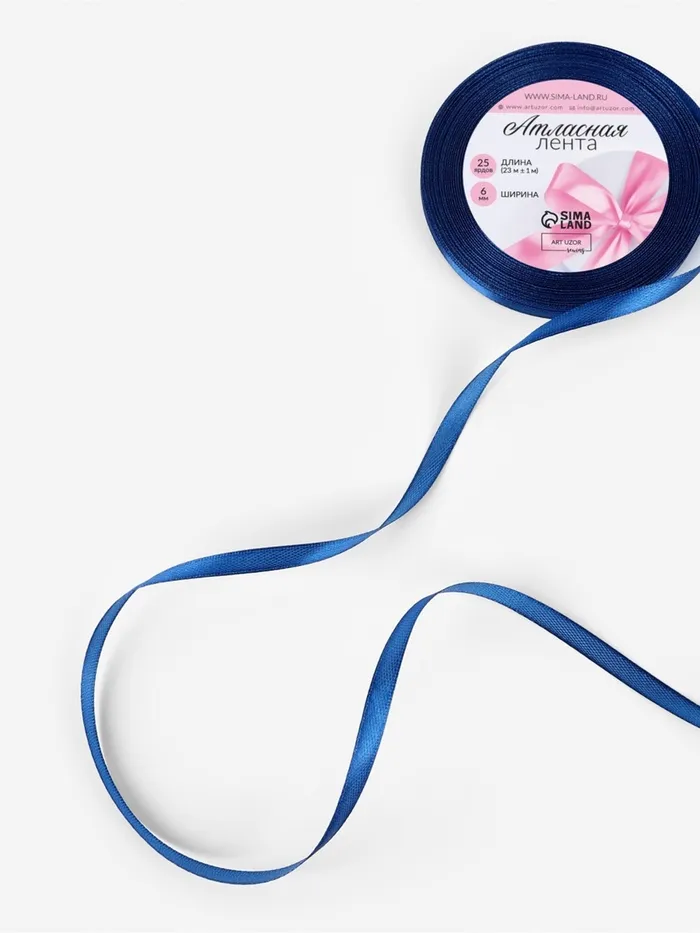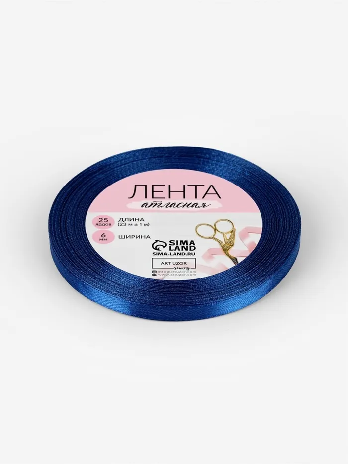 Лента атласная, 6 мм, 23±1 м, тёмно-синяя №38 — Характеристики