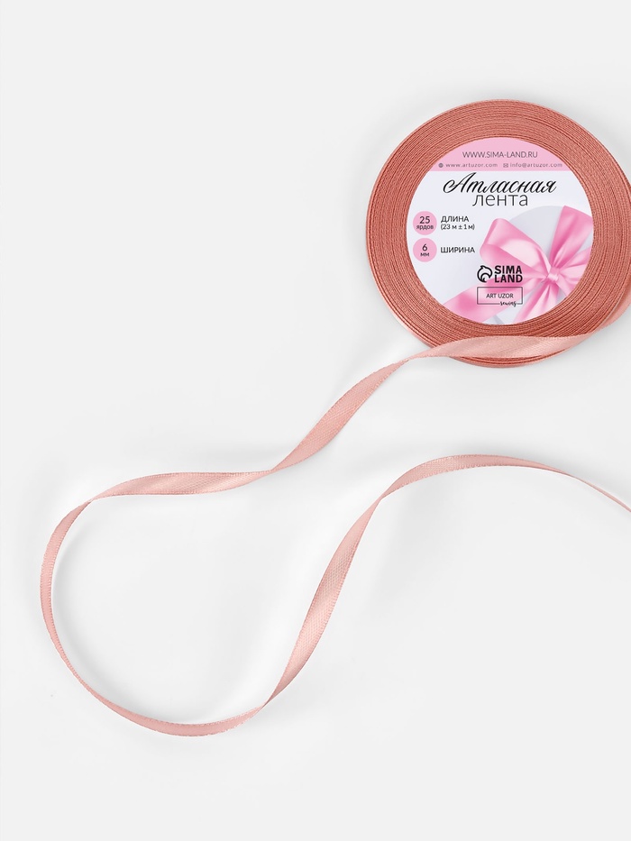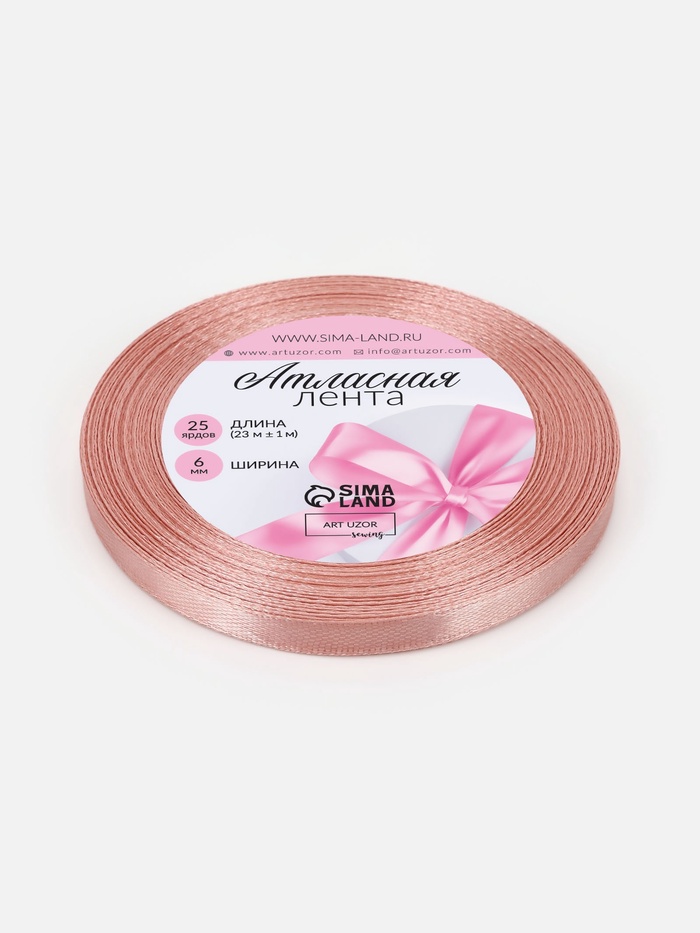 Лента атласная, 6 мм, 23±1 м, цвет розовое золото — Характеристики
