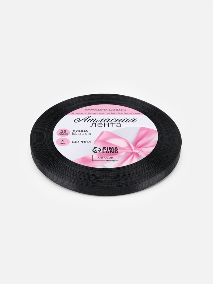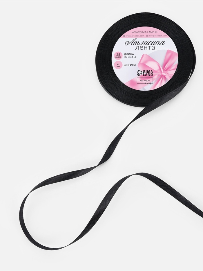 Лента атласная, 6 мм × 23 ± 1 м, цвет чёрный №39 — Характеристики