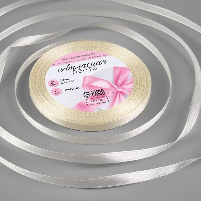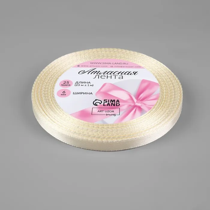 Лента атласная, 6 мм × 23 ± 1 м, цвет сливочный №02 — Характеристики