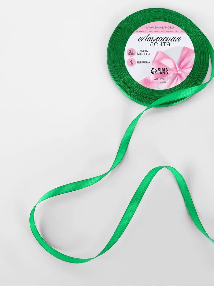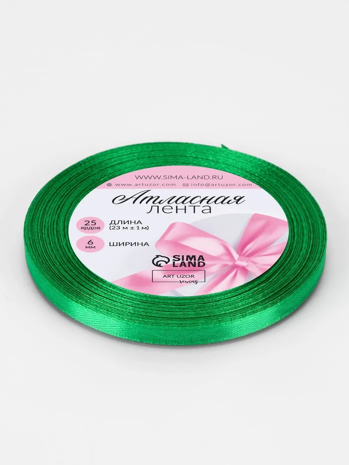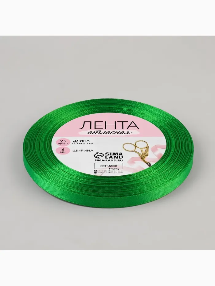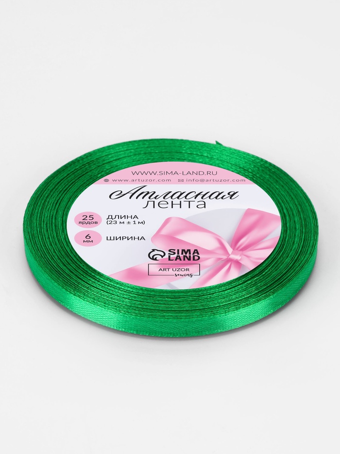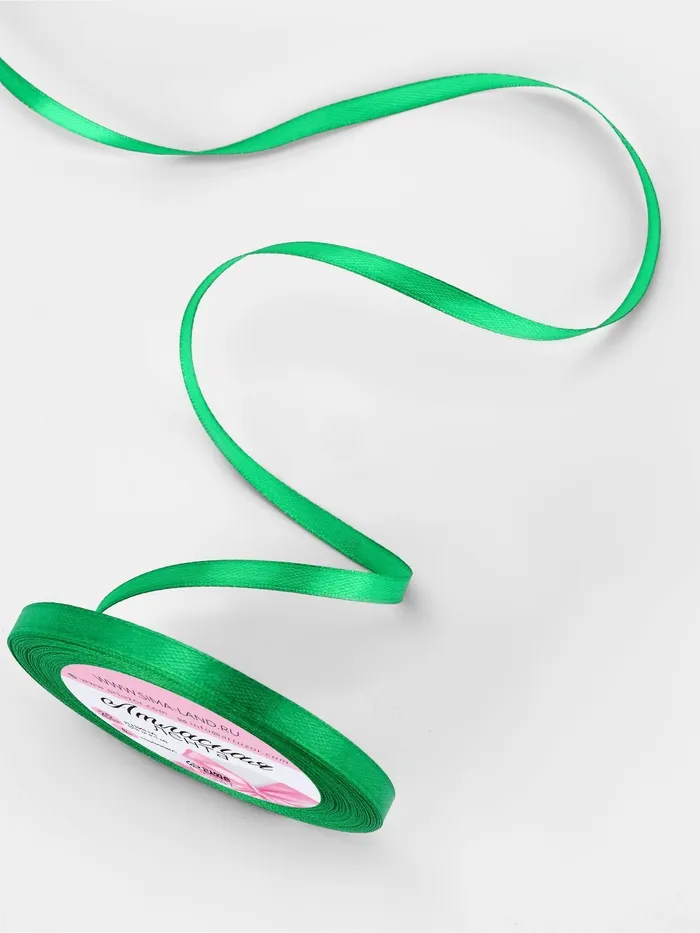 Лента атласная, 6 мм × 23 ± 1 м, цвет зелёный №19 — Характеристики