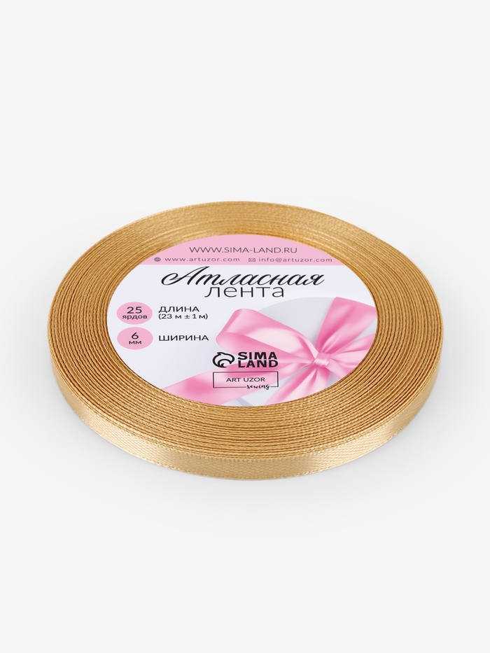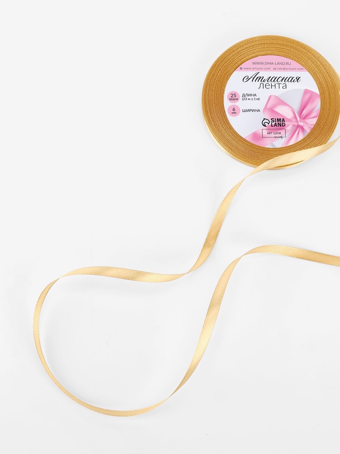 Лента атласная, 6 мм × 23±1 м, цвет золотой №204 — Характеристики