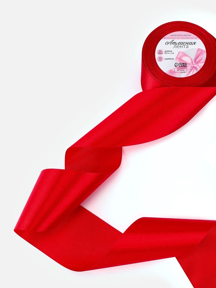 Лента атласная, 75 мм, 23±1 м, красная №26 — Характеристики